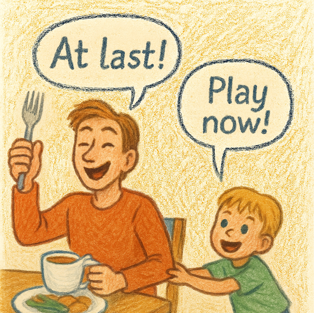 You’ve plated up, they’ve eaten half. You sit down with your own food, fork raised like a flag of hope — and then:
