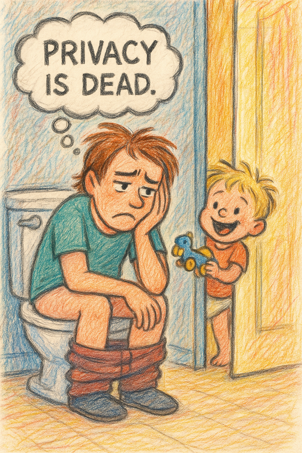 Remember when locking the bathroom door was an option? Not anymore. Toddlers view toilet breaks as VIP meet-and-greet events. If you manage a solo trip, check for signs of life — they’re probably dismantling the sofa or giving the dog a haircut.