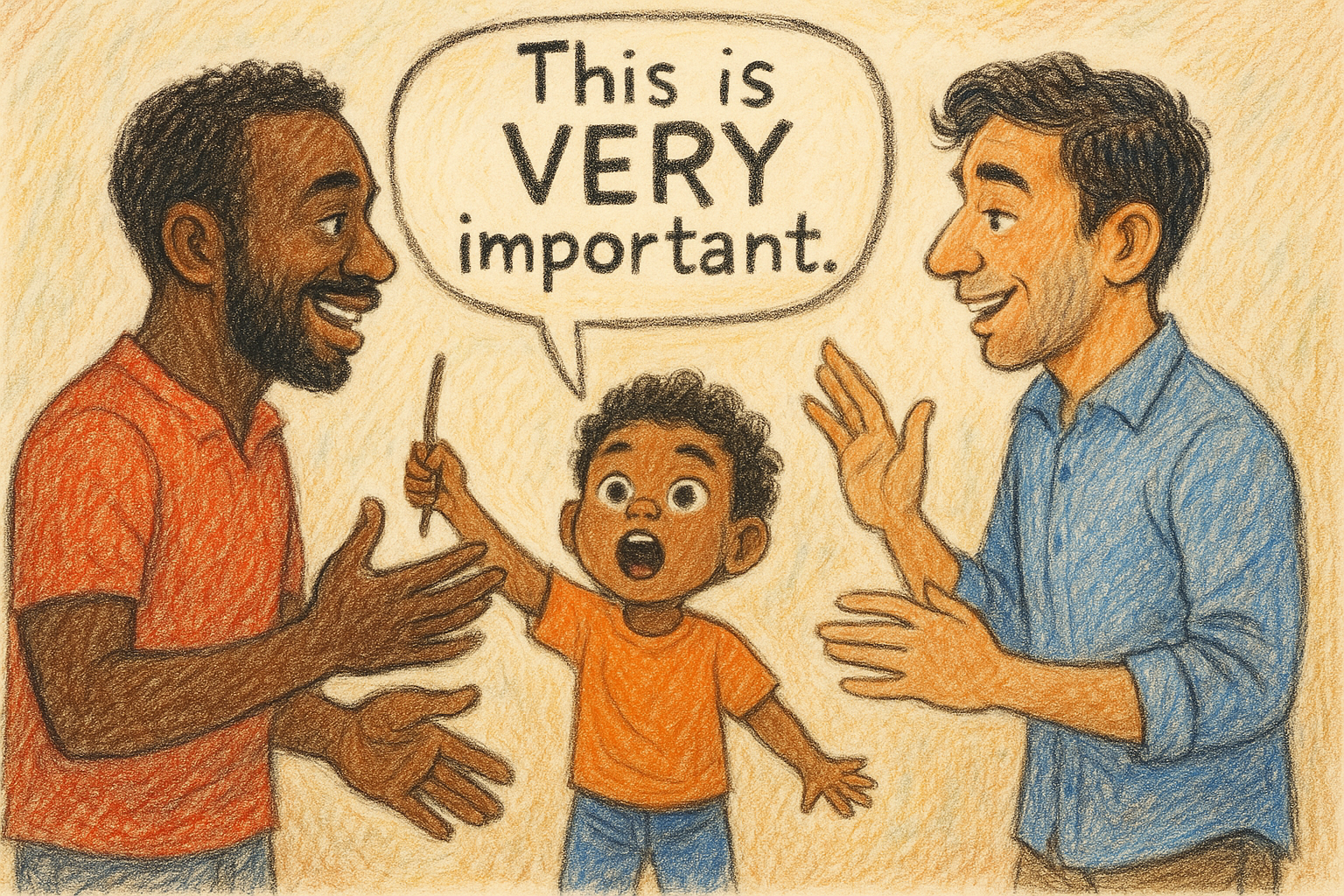 Ever tried to talk to another adult in the presence of a toddler? Impossible. They have a radar for any conversation that doesn’t involve them and will interrupt with urgent news about a stick they saw two weeks ago.